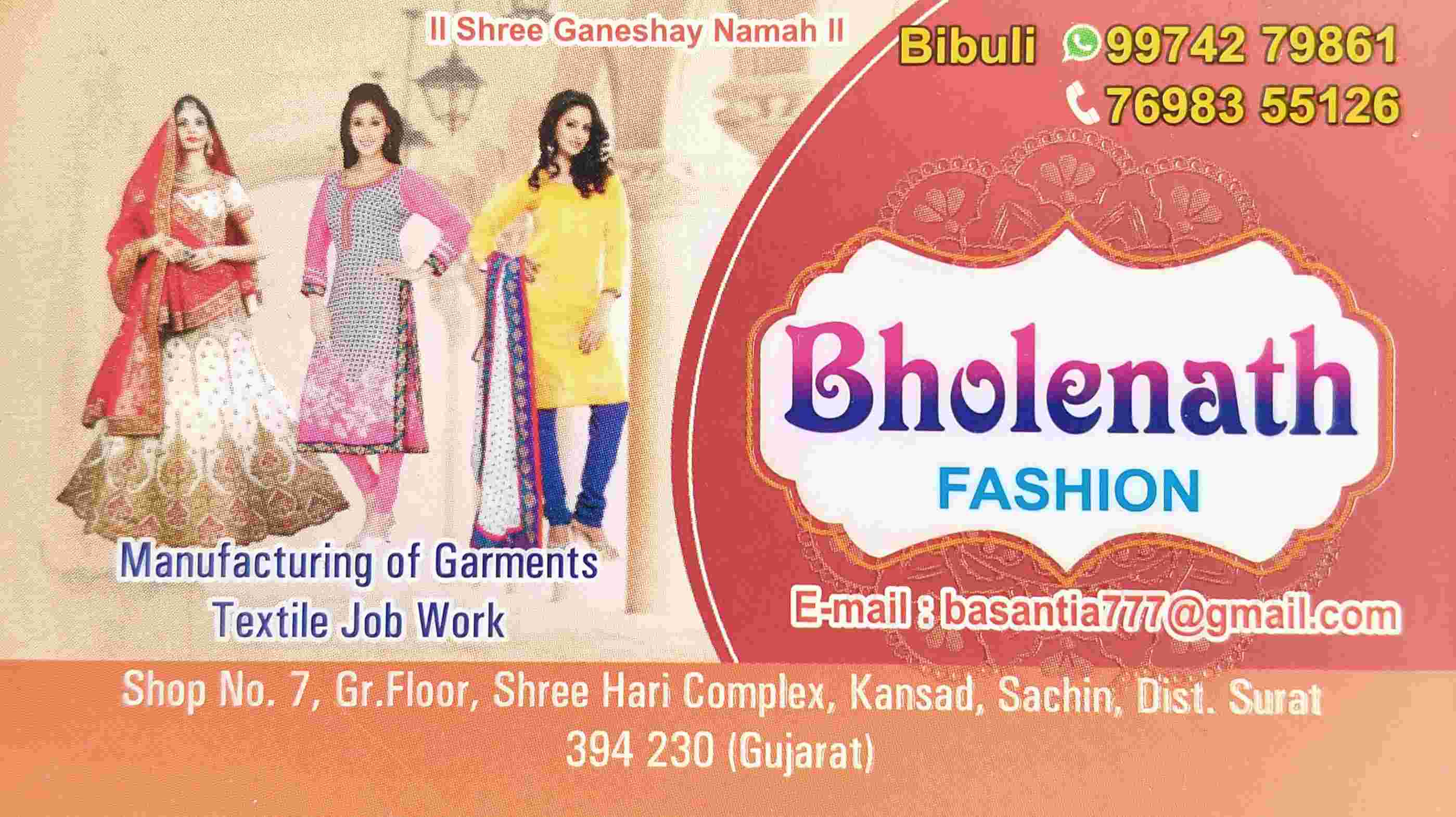 Bholenath Fashion has Manufacturing of All Types of Readymade Garments, Taxtile Job Work.