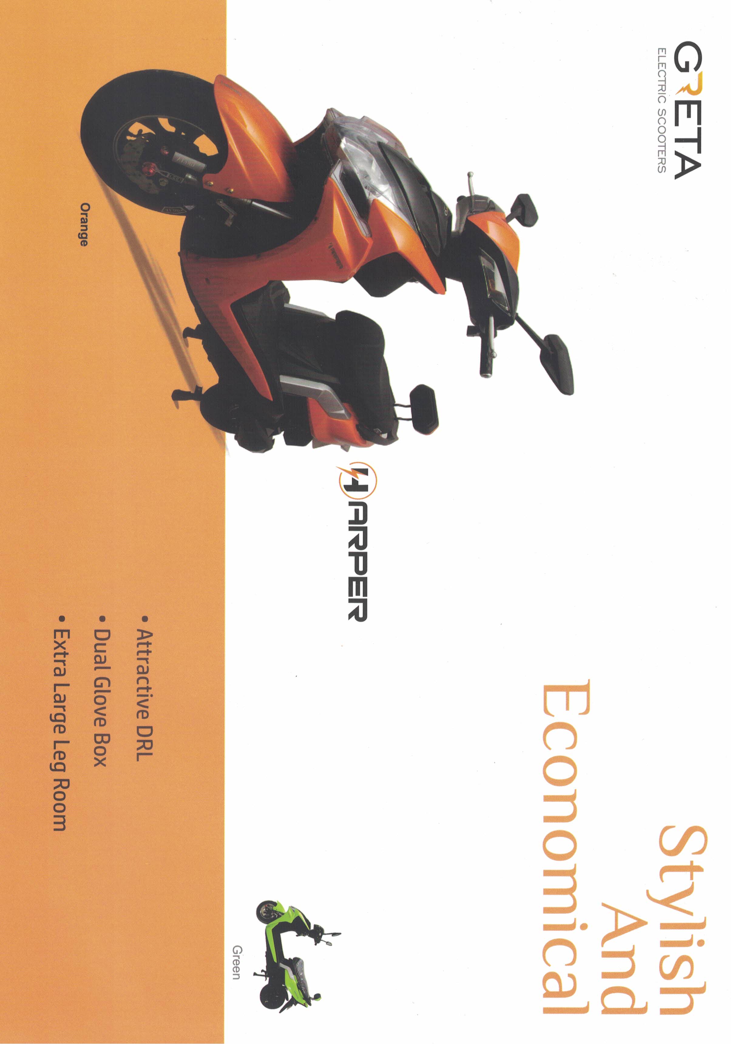 GRETA Harper electric scooter GREEN,ORANGE ,100km on full charge,16 inch leg space