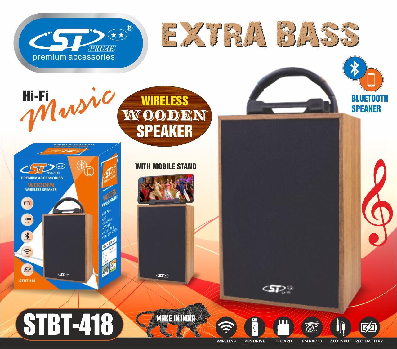 ST PRIME WIRELESS WOODEN BLUETOOTH SPEAKER Hi Fi MUSIC